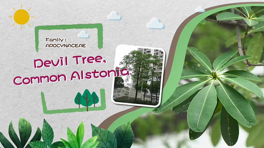 | Meanings of names | This species has several interesting names. It is called "Sugar-Gum Tree (糖膠樹)" in Chinese, as its latex can be made into chewing gum. The Chinese name also reflects one of its uses. In Asia, its wood is made into blackboards for teaching purposes, so it was named "Blackboard Tree (黑板樹)" in Chinese. Besides, the specific epithet “scholaris” in its scientific name means “of or belonging to a school”. The Chinese name "Noodle Tree (麵條樹)" describes its linear, greyish white and drooping follicles, which look like a bunch of noodles hanging on the tree. |
