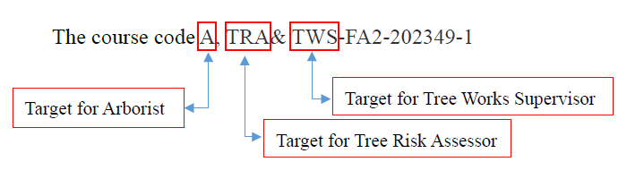 He/she only needs to complete the CEA Course A once to obtain CEA hours for Arborist, Tree Risk Assessor and Tree Work Supervisor at the same time. It is not necessary to attend the same course for 3 times so as to obtain the CEA hours for each type of personnel individually. Also, the CEA hours of Course A can be counted as the optional CEA hours for other non-targeted personnel type(s) of the course including Tree Climber and Chainsaw Operator.